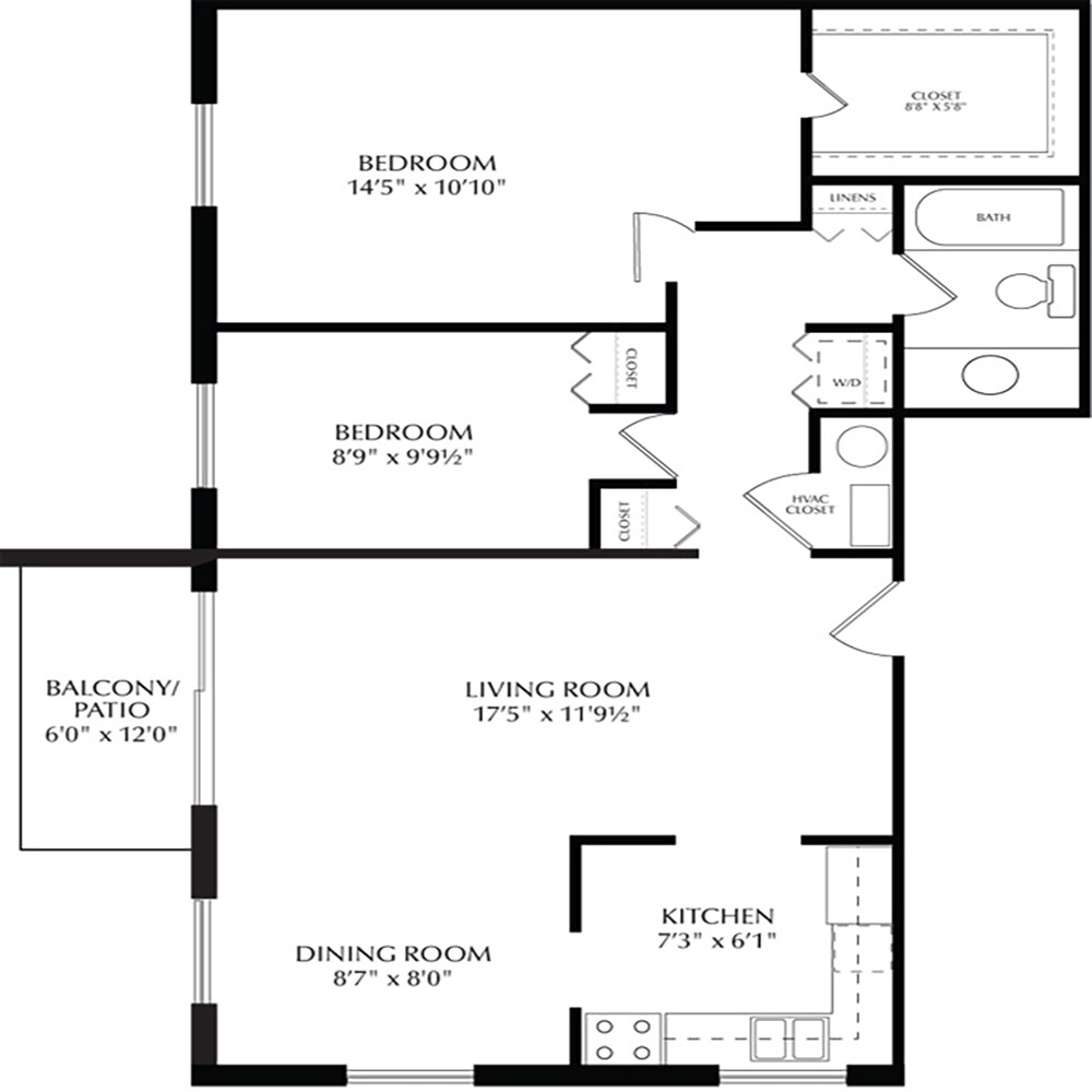 Modelo de apartamento: JuniperDesde $2,1662 Dormitorios, 1 Baño, 886 sq ftDisponible Ahora![]()