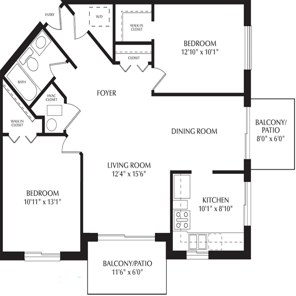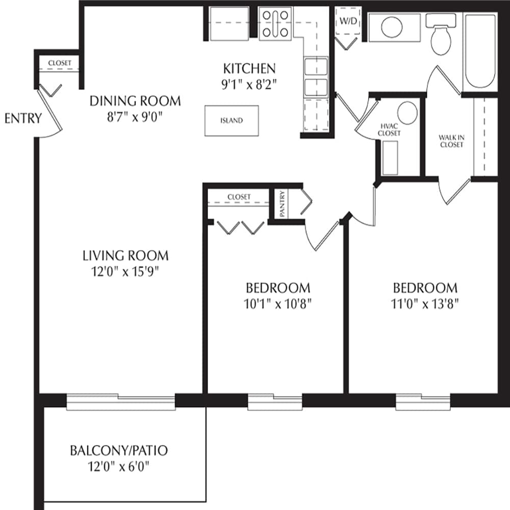 Modelo de apartamento: BirchLlame para Precios2 Dormitorios, 1 Baño, 915 sq ftNo DisponibleBirch - Plano 1 Birch - Plano 2 Magnolia