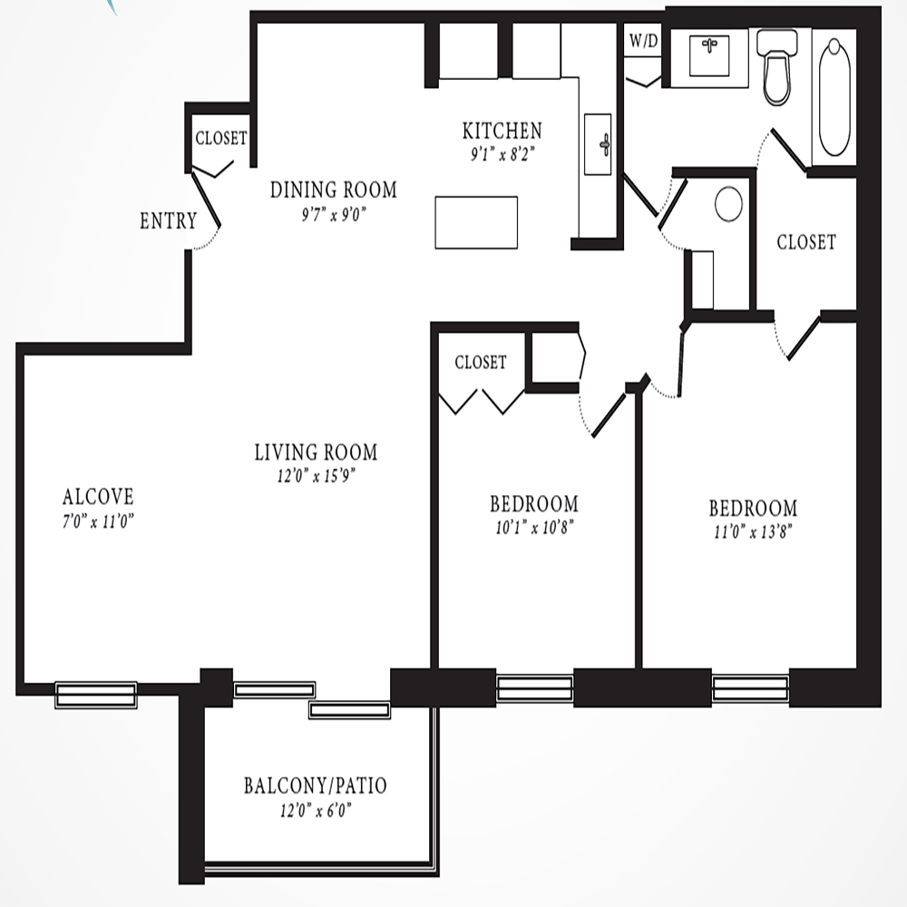 Willow - Plano 2 Unidad de apartamento: 716106Modelo de apartamento: Willow$2,2192 Dormitorios, 1 Baño, 906 sq ftDisponible AhoraChestnut