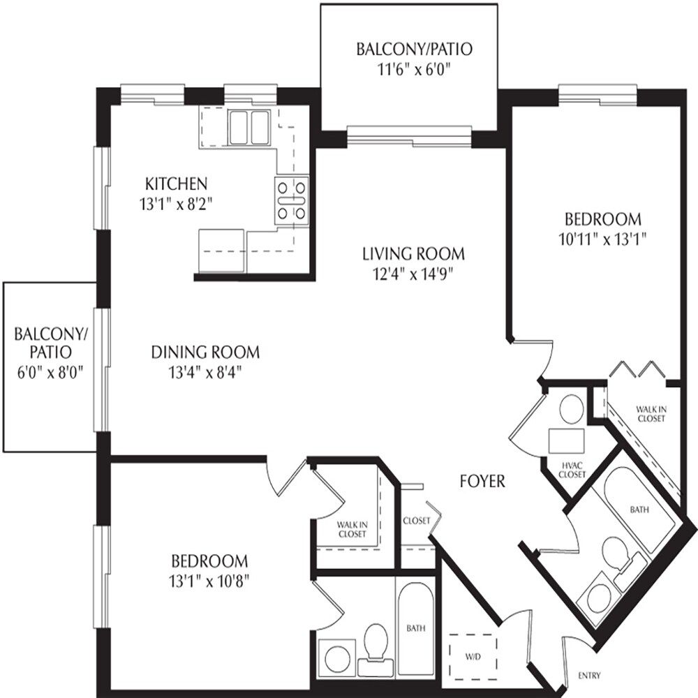 2 Dormitorios, 1 Baño, 886 pies²Disponible AhoraGalería del Modelo