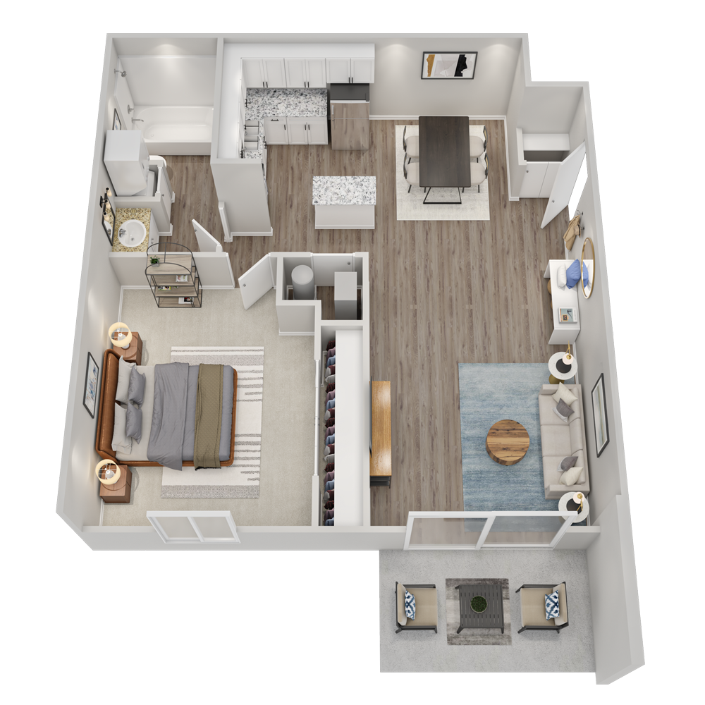 1 Dormitorio, 1 Baño, 665 pies²Disponible AhoraGalería del Modelo