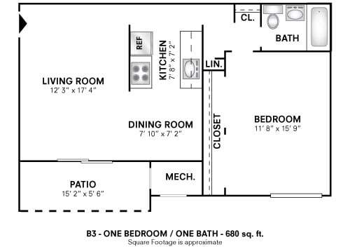 One Bedroom - 540 sqft - Plano 3 ![]()
