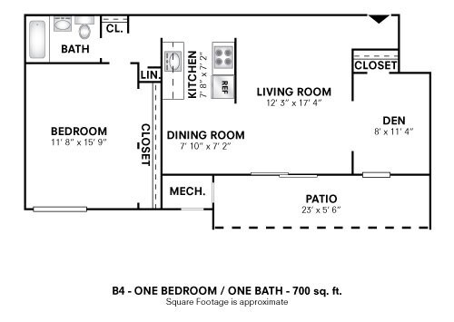 One Bedroom - 540 sqft - Plano 4 Unidad de apartamento: 5635-00AModelo de apartamento: One Bedroom - 540 sqft$1,5851 Dormitorio, 1 Baño, 540 sq ftDisponible AhoraOne Bedroom w/ Den - 700 sqft