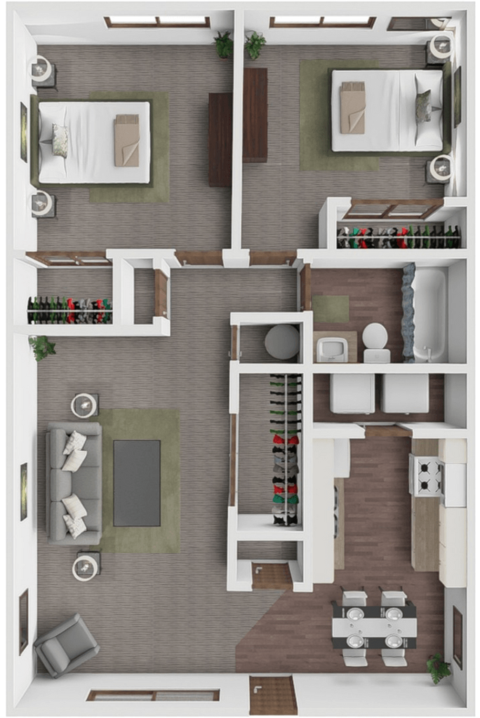 2 Dormitorios, 1 Baño, 900 pies²Disponible AhoraGalería del Modelo