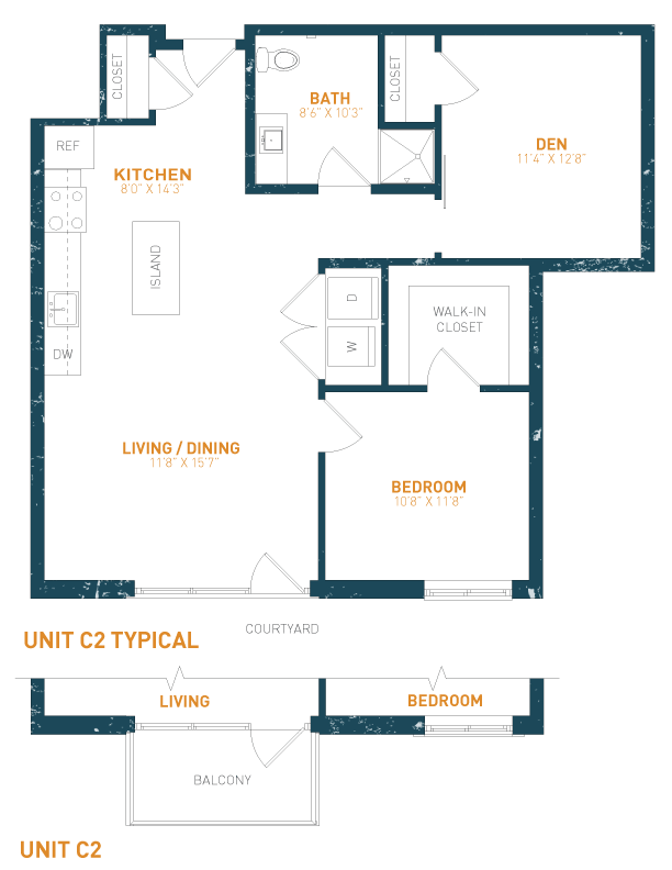 - Los apartamentos arriba de la Podium Level están marcadas por 9-8 Ft.