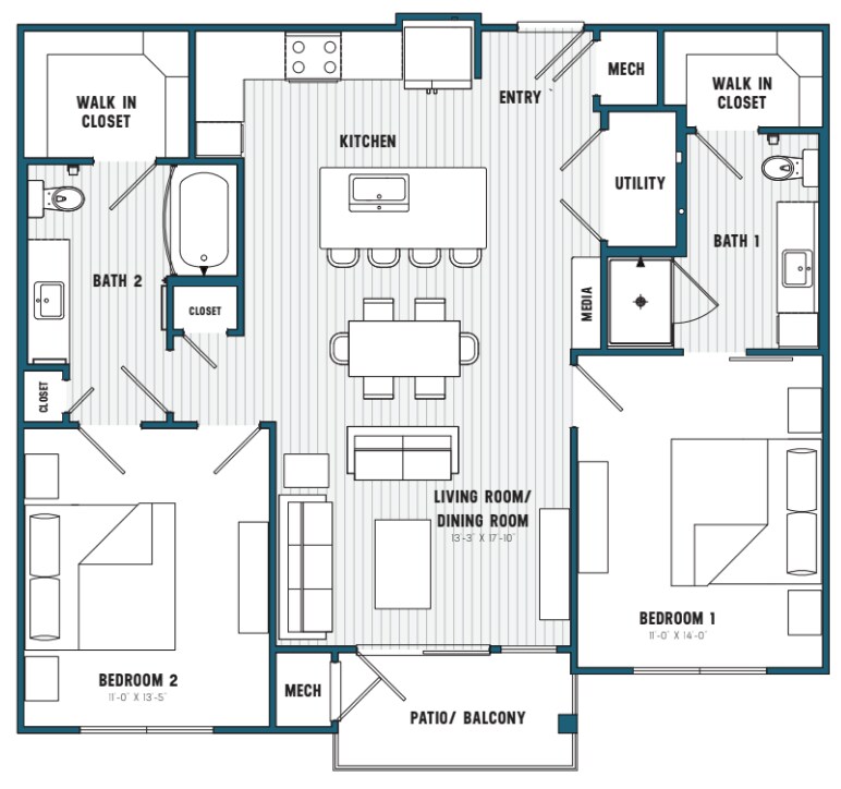 1 Dormitorio, 1 Baño, 932 pies²El más grandeEsta opción tiene las unidades más grandes para este modeloGalería del Modelo