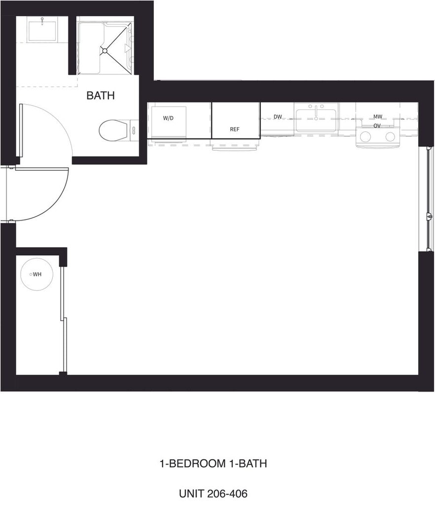 S Standard - Imagen 4 Unidad de apartamento: 406Modelo de apartamento: S StandardEstudio, 1 Baño, 469 sq ftDisponible January 7, 20261x1U Standard