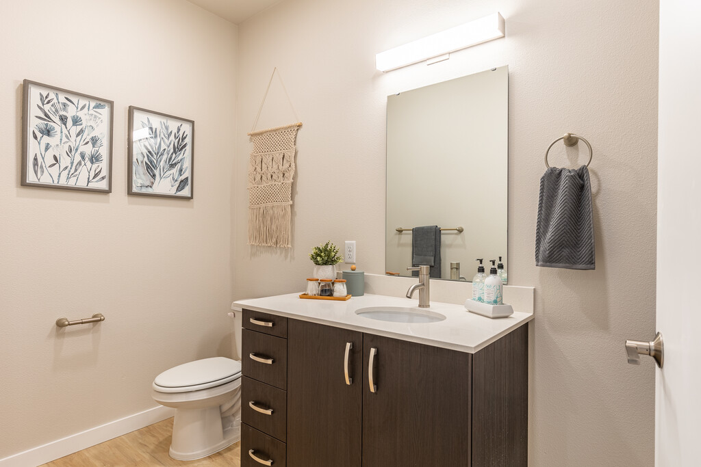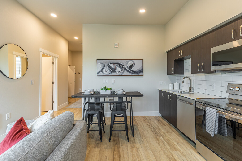 APARTAMENTOS NUEVOS Y COMODIDADES EN GRESHAM CASUAL. CÓMODO. CONECTADOS Encuentra todo lo que buscas en uno de nuestros nuevo apartamento de una, dos o tres habitaciones en Brookside en Gresham, Oregon. Modernos y abiertos apartamentos con todo el espacio adicional y las comodidades que esperas de la vida suburbana, además de todos los toques modernos del paisaje urbano de hoy. Nuestra ubicación perfecta en Gresham te mantiene conectado con un viaje diario fácil, accesible para personas con discapacidades, medios de transporte y de las comodidades transitables a pie, mientras que nuestro complejo que admite mascotas y comodidades fueron actualizados para mejorar cada aspecto de tu estilo de vida del noroeste del Pacífico. Duraderos pisos estilo madera, gabinetes sin marcos, encimeras de cuarzo y electrodomésticos Samsung están presentes en cada hogar. Lavadoras y secadoras además de un patio o balcón privado con espacio de almacenaje adicional incluido para máxima conveniencia. Brookside cuenta con pasarelas peatonales y senderos para disfrutar de los exuberantes alrededores, los jardines tipo lluvia, un área de juegos infantiles, parque para perros, todo con estacionamiento abundante y accesibilidad. Nuestra acogedora casa club cuenta con áreas de comedor al aire libre, estaciones de trabajo desde casa y estaciones de reuniones, además de una cocina para ampliar tu hogar cuando y por cualquier razón. ¿No hay tiempo para salir a la ruta? ¡No hay problema! ¡Sumérgete en nuestro conveniente gimnasio para un rápido circuito o correr para mantener tu cuerpo en movimiento!