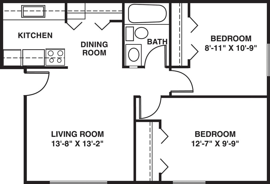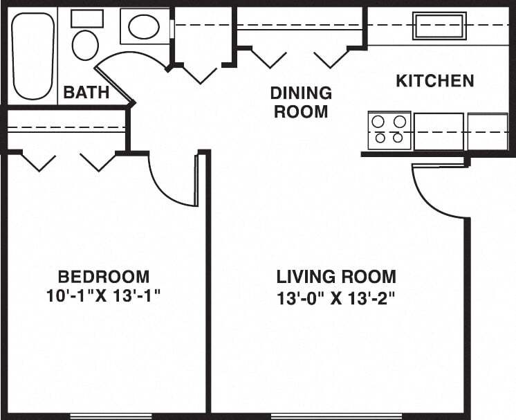Modelo de apartamento: One BedroomDesde $8261 Dormitorio, 1 Baño, 547-591 sq ftDisponible AhoraPlanosFotos![]()