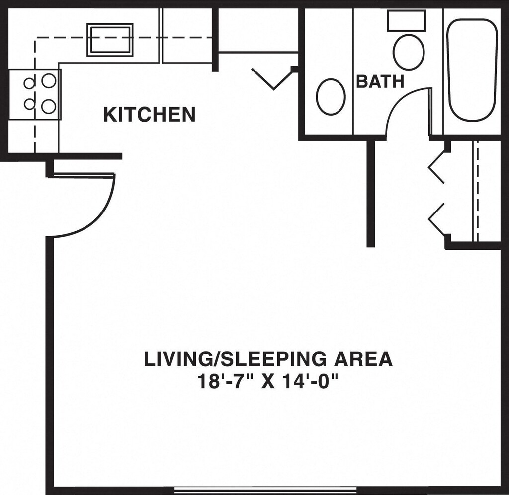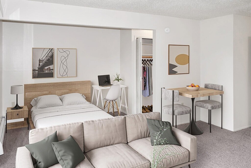 Modelo de apartamento: StudioDesde $791Estudio, 1 Baño, 416 sq ftDisponible November 28, 2025PlanosFotos![]()