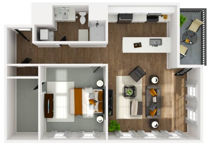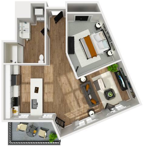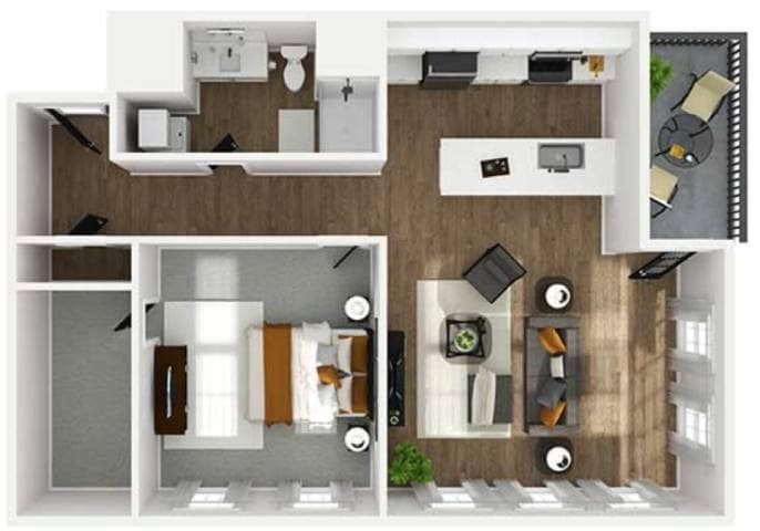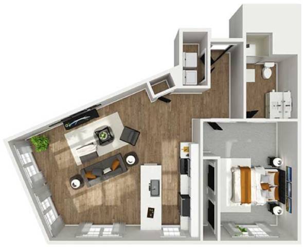 1 Dormitorio, 1 Baño, 741 pies²Disponible AhoraGalería del Modelo