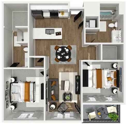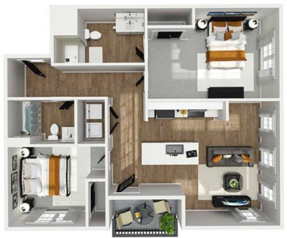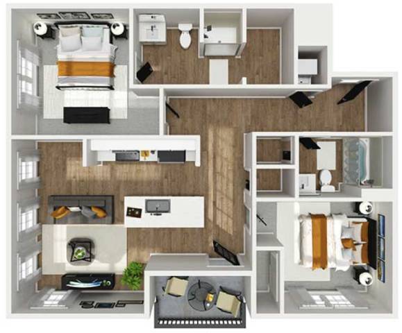 Modelo de apartamento: A2Desde $1,3701 Dormitorio, 1 Baño, 741 sq ftDisponible Ahora![]()