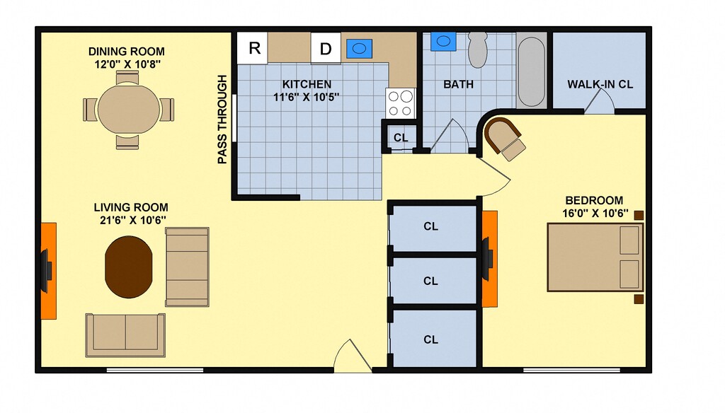 One Bedroom (Downstairs) - Plano 1 Unidad de apartamento: 06AModelo de apartamento: One Bedroom (Downstairs)$2,0551 Dormitorio, 1 Baño, 650 sq ftDisponible Ahora