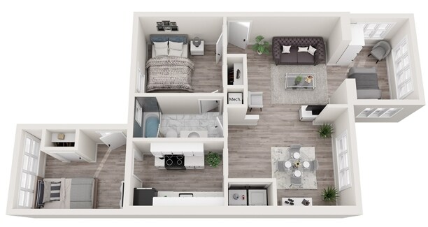 Modelo de apartamento: DuplexDesde $1,3492 Dormitorios, 1 Baño, 900 sq ftDisponible Ahora![]()