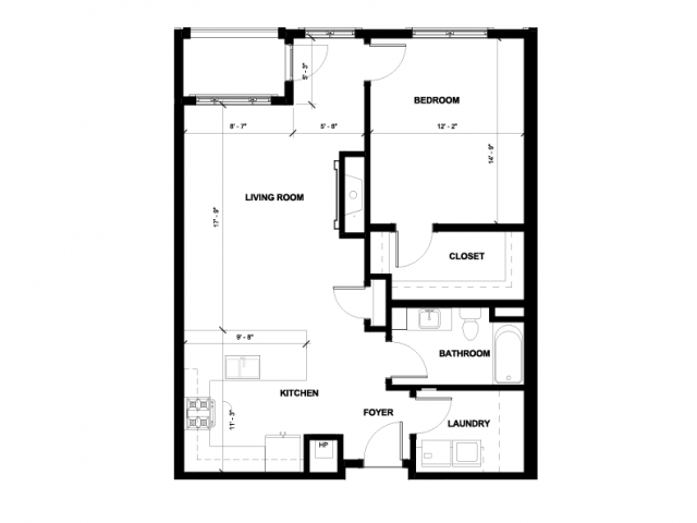 1 Dormitorio, 1 Baño, 749-1119 pies²Disponible February 1, 2026Galería del Modelo