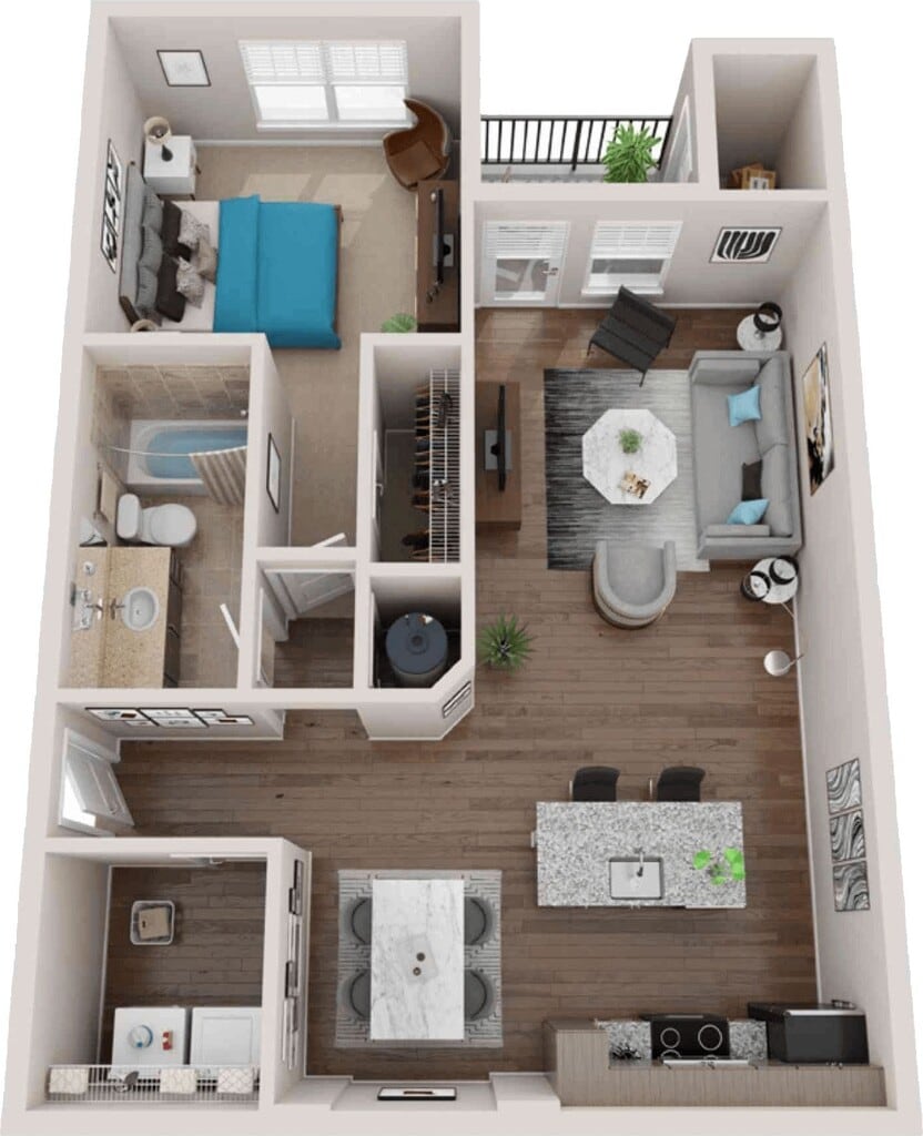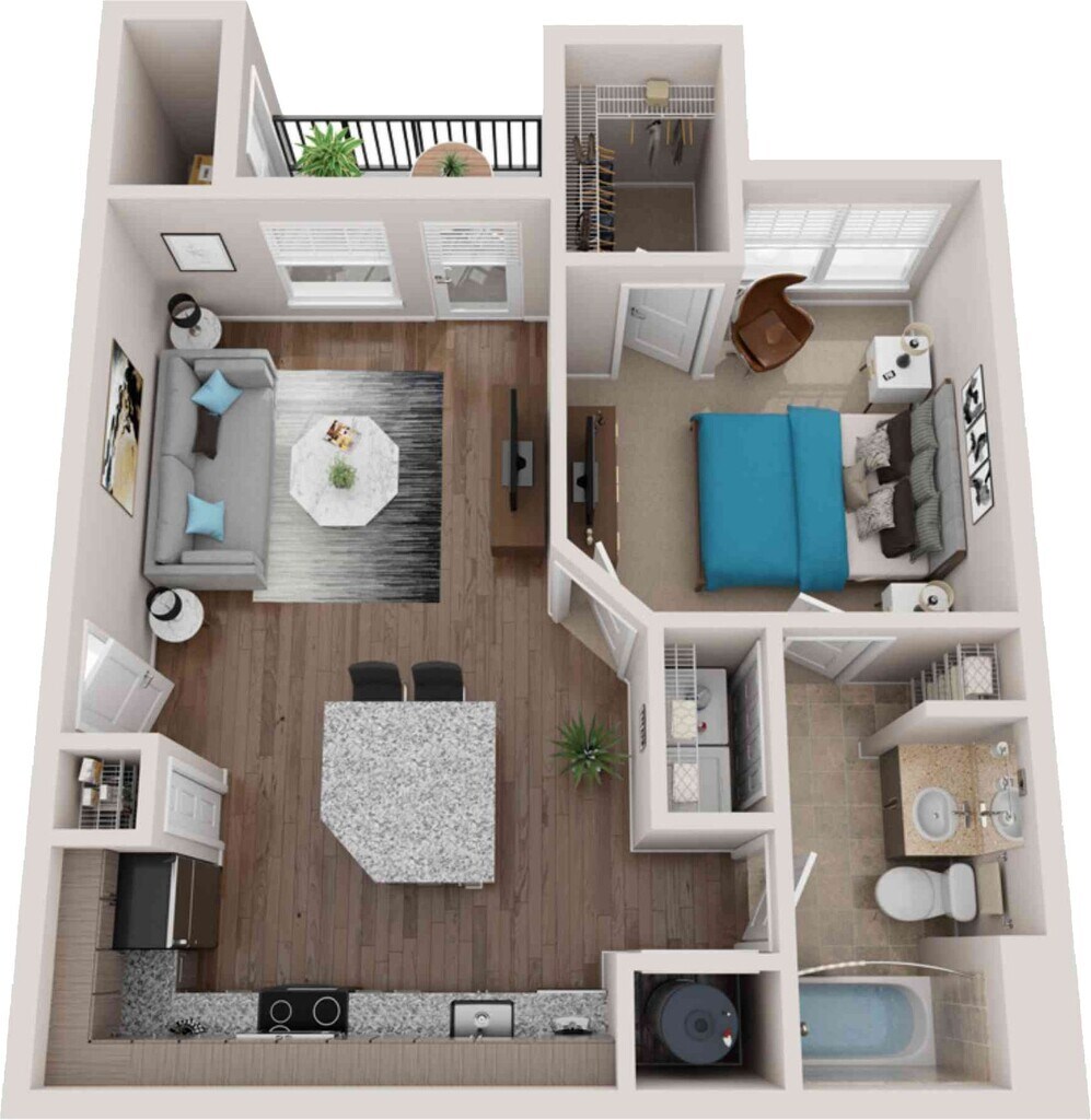 1 Dormitorio, 1 Baño, 813 pies²Disponible AhoraGalería del Modelo