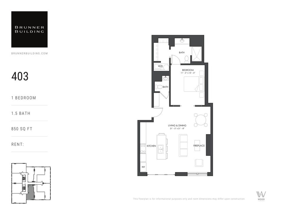 Brunner Building ofrece apartamentos de 1 Dormitorio desde $1,895 con 876–913 pies cuadrados. Aquí está el precio actual y la disponibilidad: