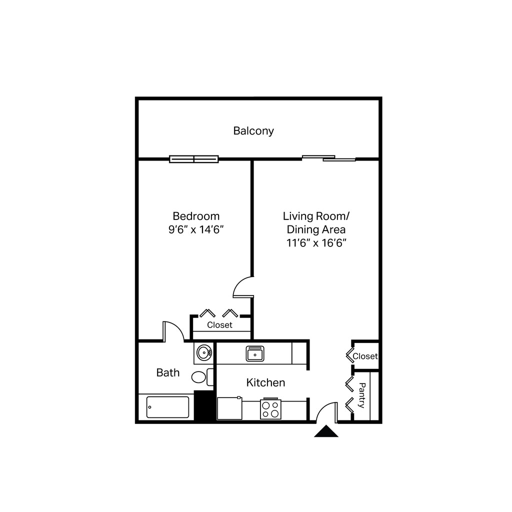 Modelo de apartamento: 1 Bedroom, 1 Bath1 Dormitorio, 1 Baño, 550 sq ftNo Disponible![]()