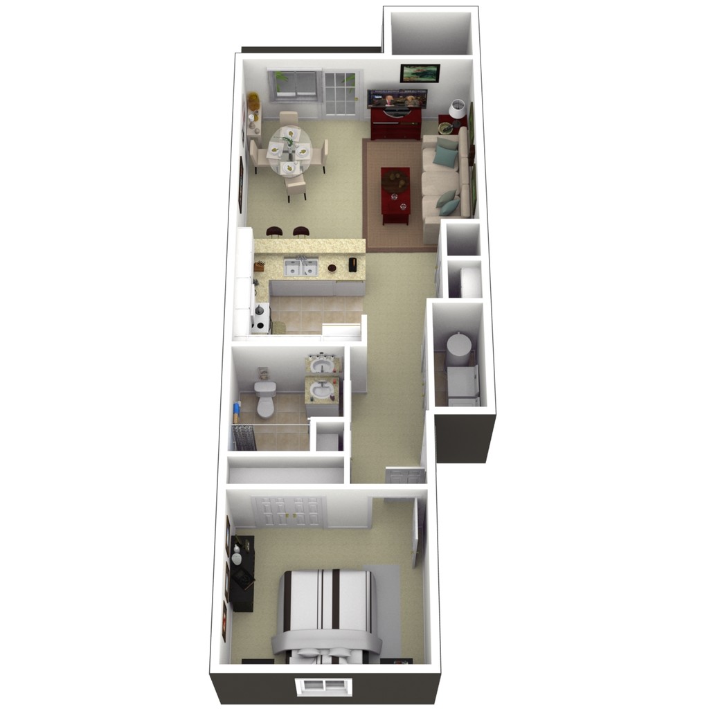 Modelo de apartamento: The Willow1 Dormitorio, 1 Baño, 761 sq ftDisponible Ahora![]()