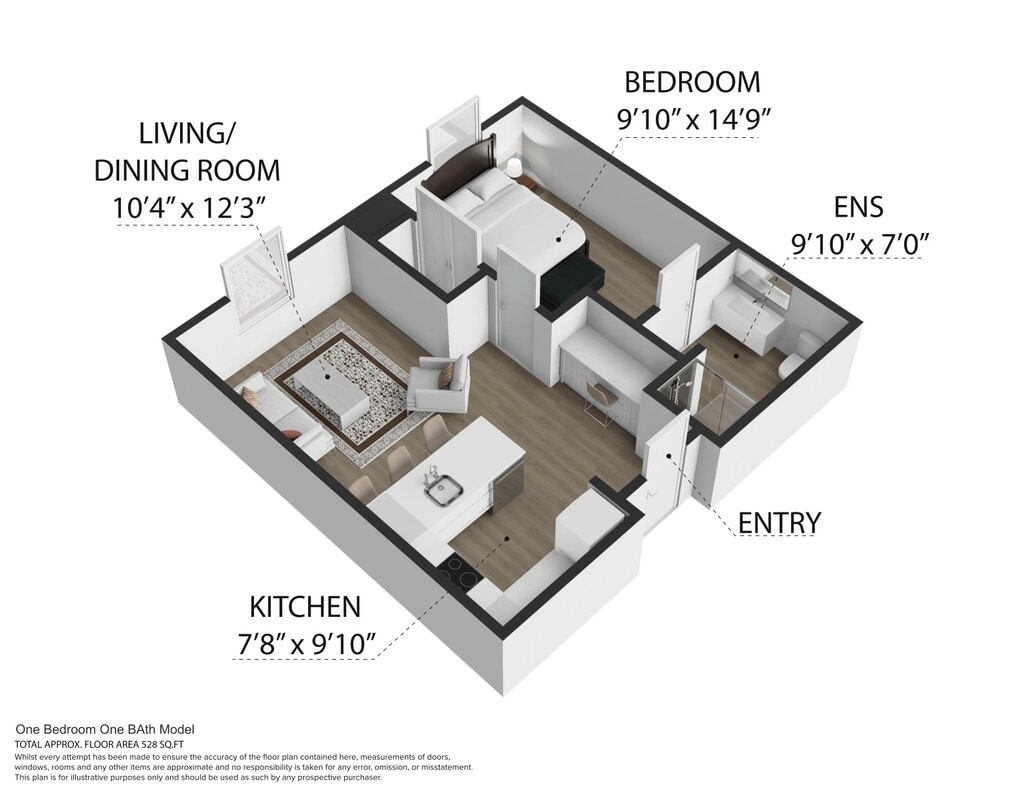 1 Dormitorio, 1 Baño, 546-620 pies²Disponible AhoraGalería del Modelo