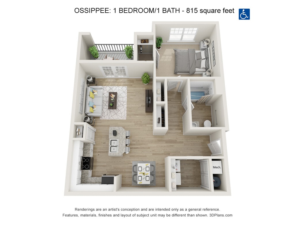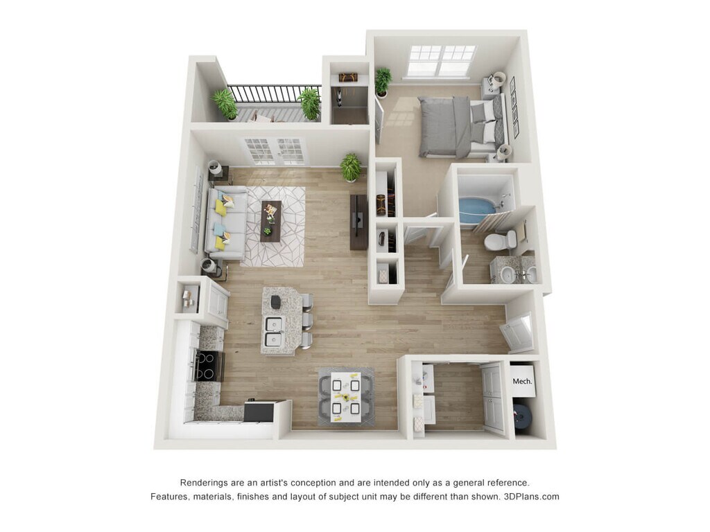 1 Dormitorio, 1 Baño, 815 pies²Disponible AhoraGalería del Modelo