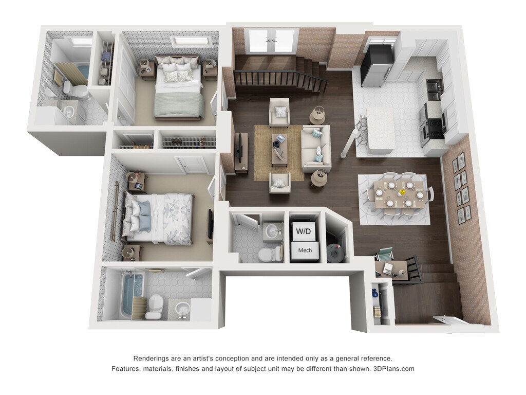 2 Dormitorios, 1.5 Baños, 1100 pies²Disponible AhoraGalería del Modelo