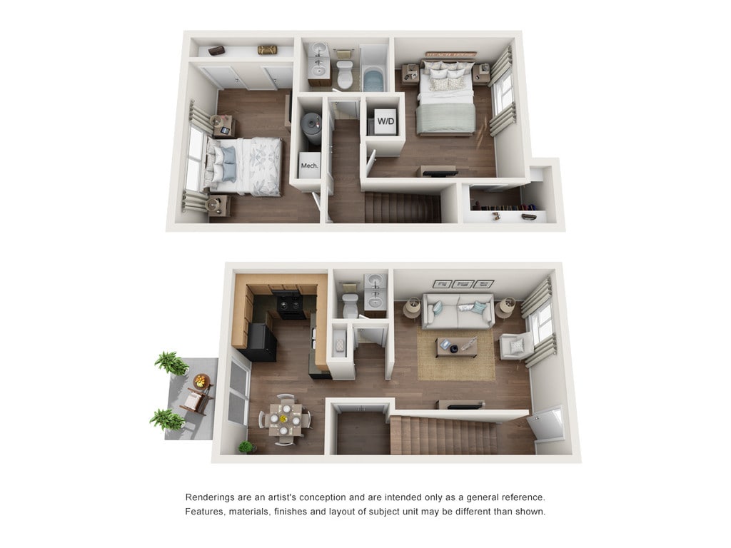 2 Dormitorios, 1.5 Baños, 844 pies²Disponible AhoraGalería del Modelo