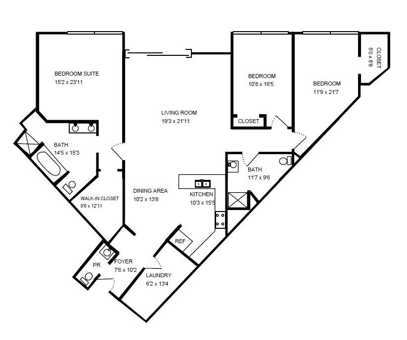 Modelo de apartamento: BUCK 3 BED A3 Dormitorios, 3 Baños, 2330 sq ftDisponible AhoraBUCK 3 BED A - Plano 1 Unidad de apartamento: 3AModelo de apartamento: BUCK 3 BED A3 Dormitorios, 3 Baños, 2330 sq ftDisponible AhoraBUCK 3 BED E