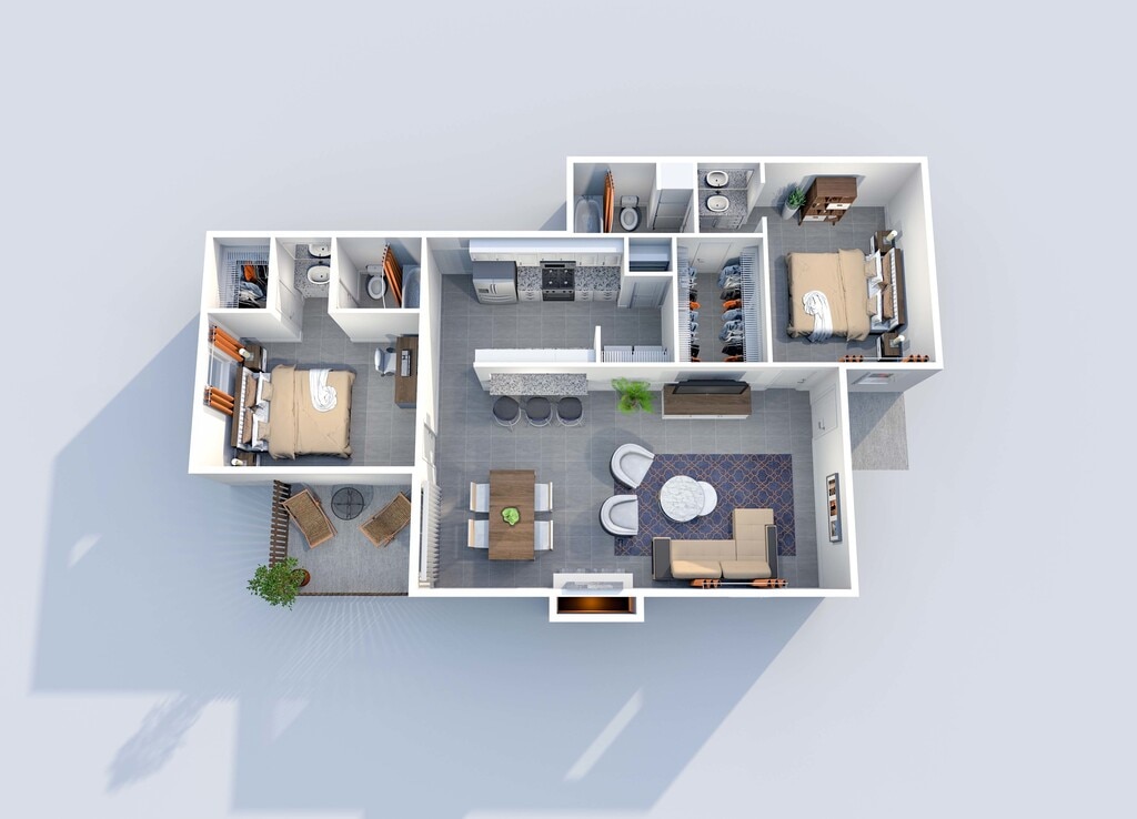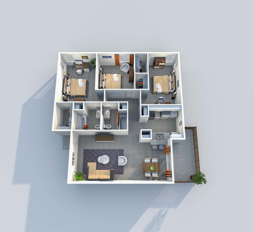 Modelo de apartamento: C3$1,4003 Dormitorios, 2 Baños, 1287 sq ftDisponible Ahora![]()