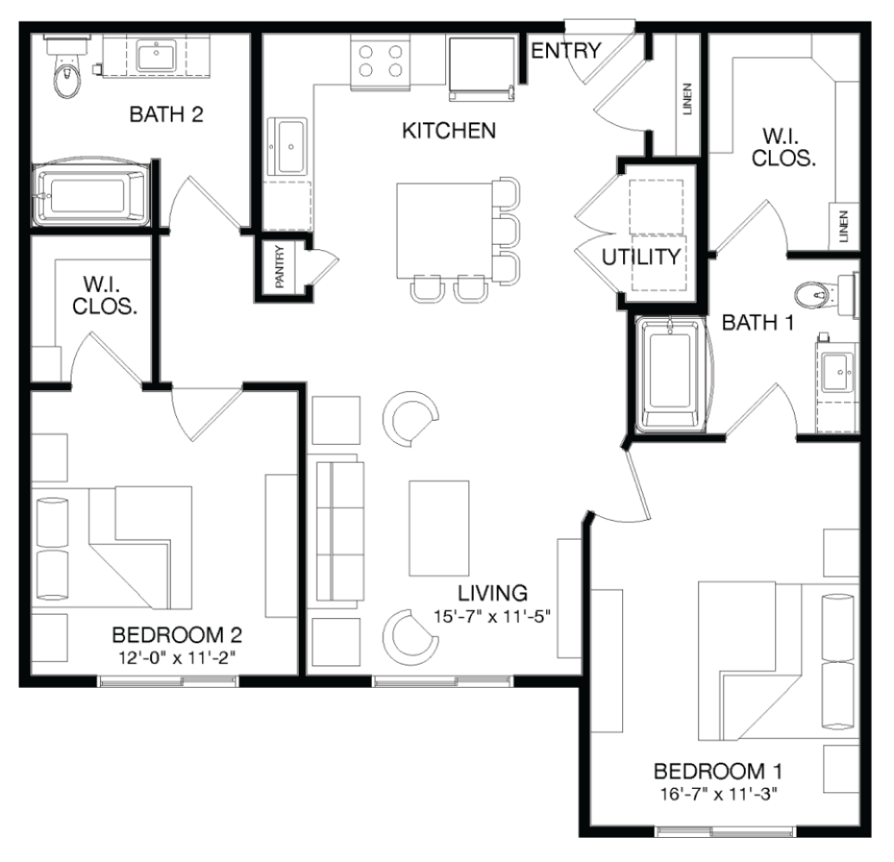Modelo de apartamento: BaldyDesde $1,4621 Dormitorio, 1 Baño, 751 sq ftDisponible AhoraLos planos son representaciones artísticas. Todas las dimensiones son aproximadas. El producto y las especificaciones reales pueden variar en tamaño o detalle. No todas las características están disponibles en cada vivienda en alquiler. Por favor, consulta con un representante para obtener más detalles.