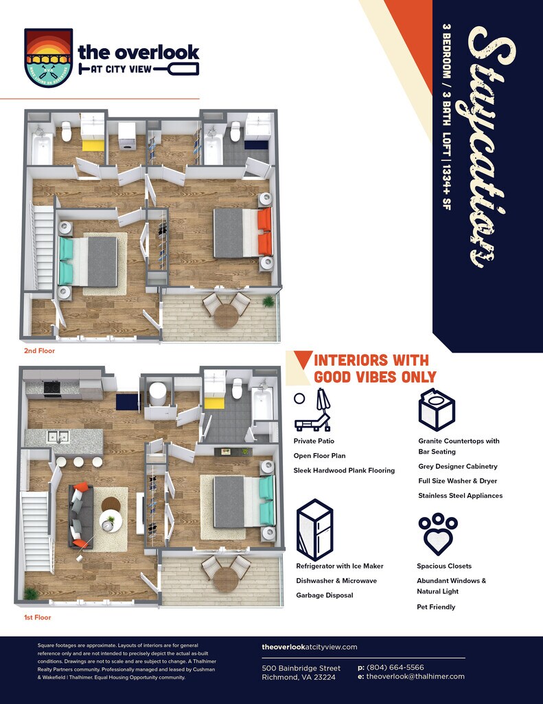 Modelo de apartamento: Staycation3 Dormitorios, 3 Baños, 1334-1336 sq ftDisponible Ahora![]()