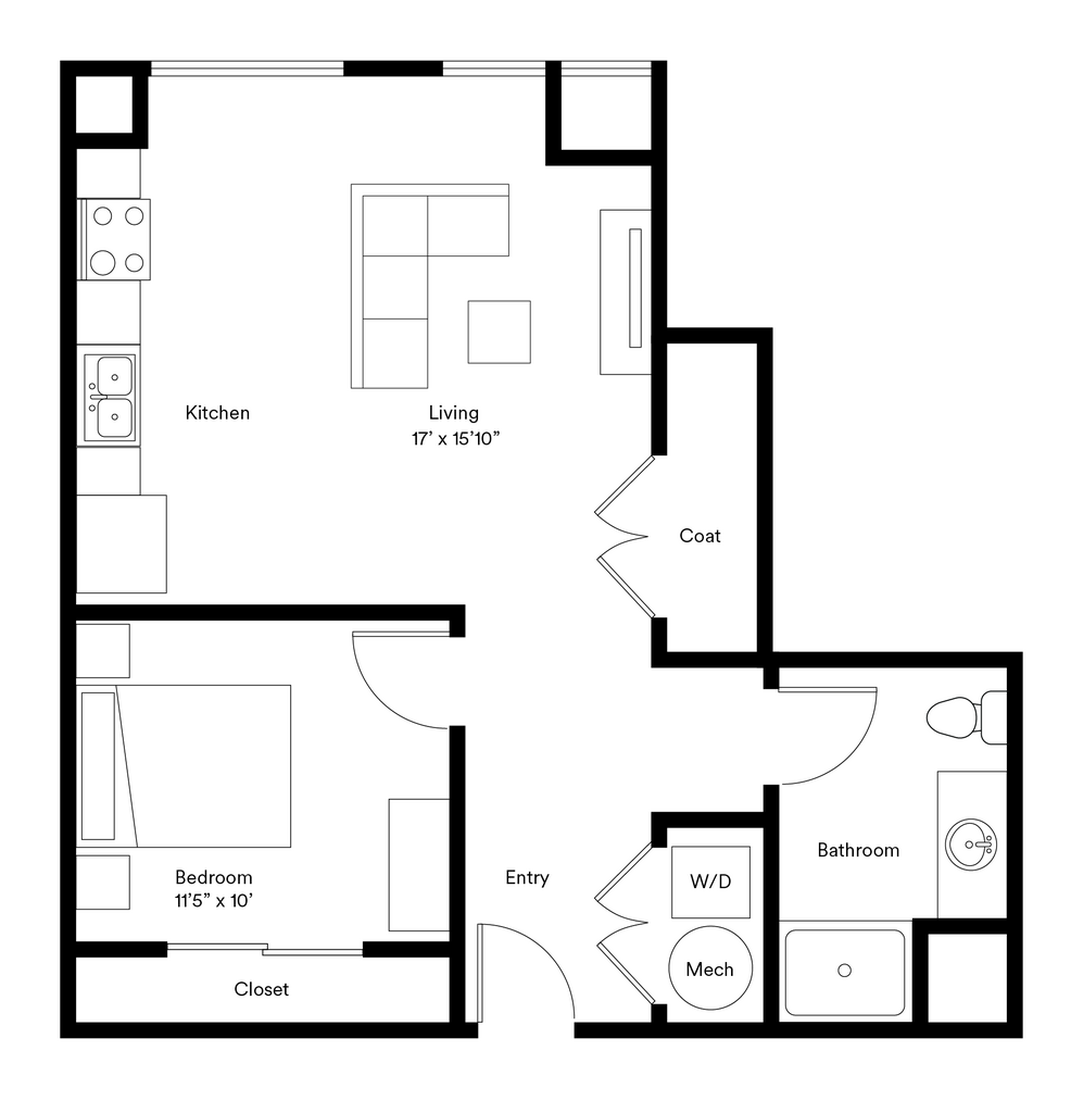 1 Dormitorio, 1 Baño, 600 pies²Disponible AhoraGalería del Modelo