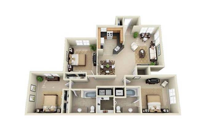Modelo de apartamento: A3RDesde $1,7631 Dormitorio, 1 Baño, 892 sq ftDisponible Ahora![]()
