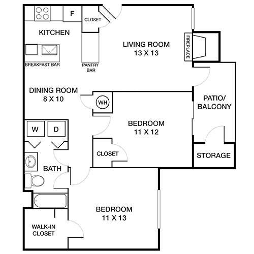 Modelo de apartamento: The WesleyLlame para Precios1 Dormitorio, 1 Baño, 715 sq ftNo DisponibleThe Wesley - Plano 1 The Windsor
