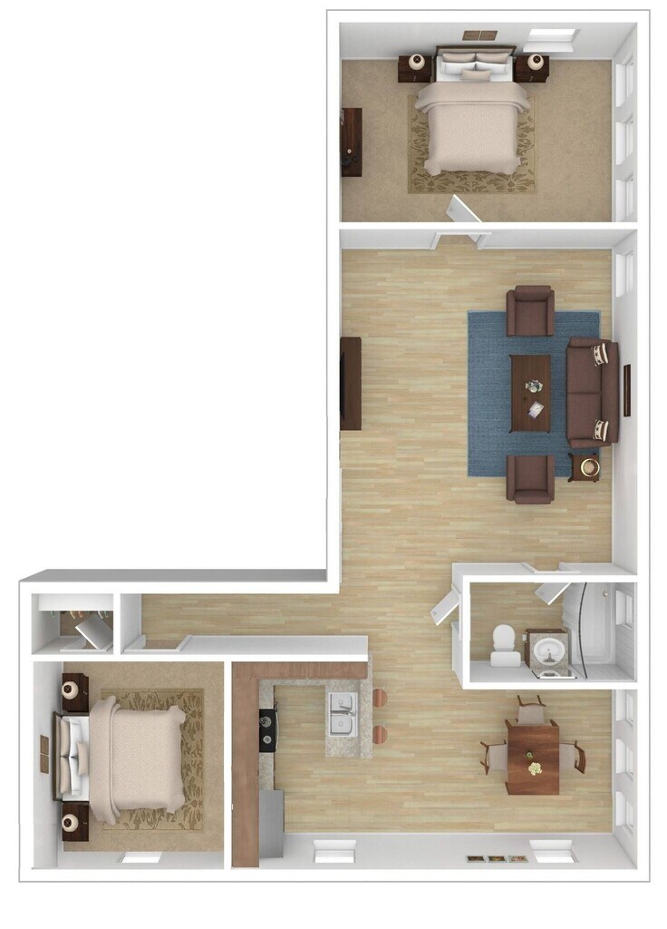 2 Dormitorios, 1 Baño, 700 pies²Galería del Modelo