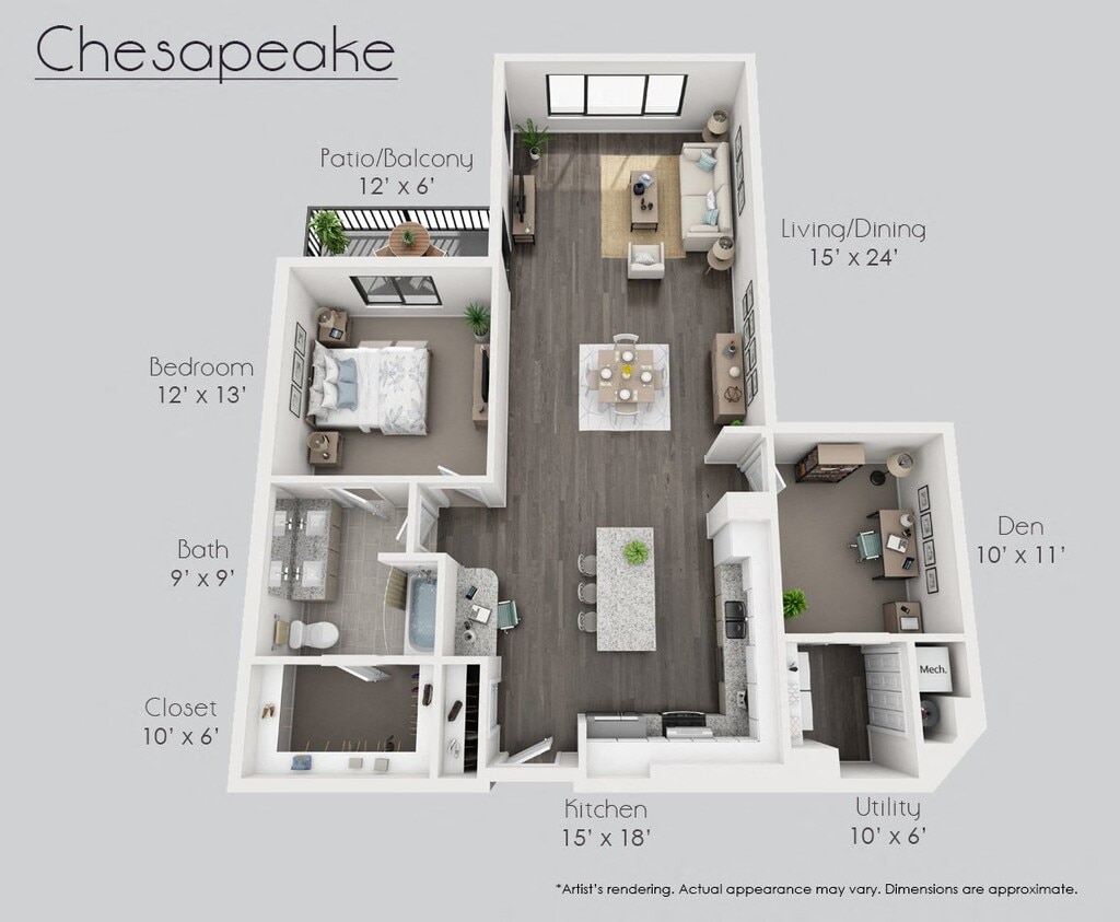 1 Dormitorio, 1 Baño, 823 pies²Disponible AhoraGalería del Modelo