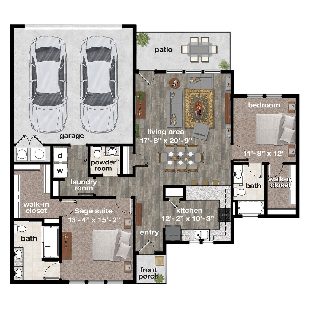 1 Dormitorio, 1.5 Baños, 1213 pies²Disponible AhoraGalería del Modelo