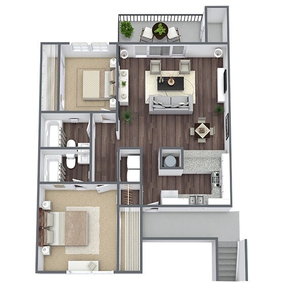 2 Dormitorios, 2 Baños, 887 pies²Disponible AhoraGalería del Modelo
