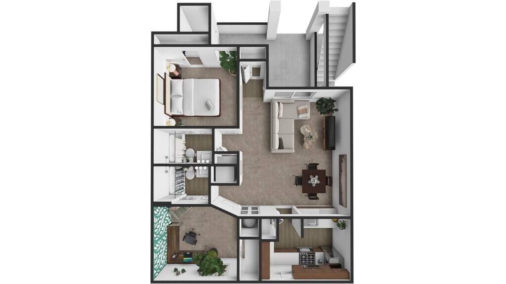 1 Dormitorio, 1 Baño, 750 pies²Disponible AhoraGalería del Modelo