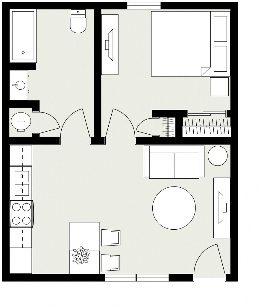 Modelo de apartamento: 1 Bed 1 Bath - EfficiencyDesde $8101 Dormitorio, 1 Baño, 492-564 sq ftNo Disponible1 Bed 1 Bath - Efficiency - Plano 1 1 Bed 1 Bath
