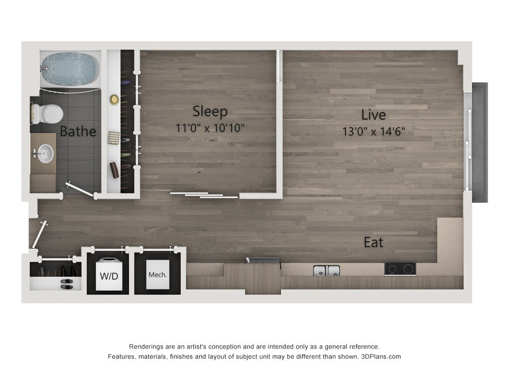 Estudio, 1 Baño, 682 pies²Disponible AhoraGalería del Modelo