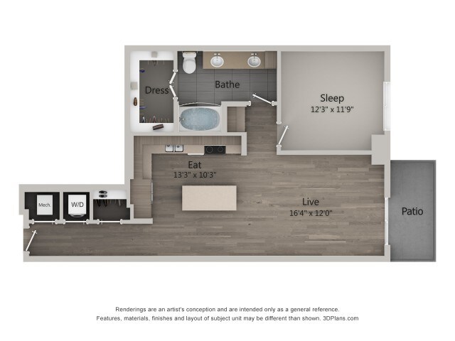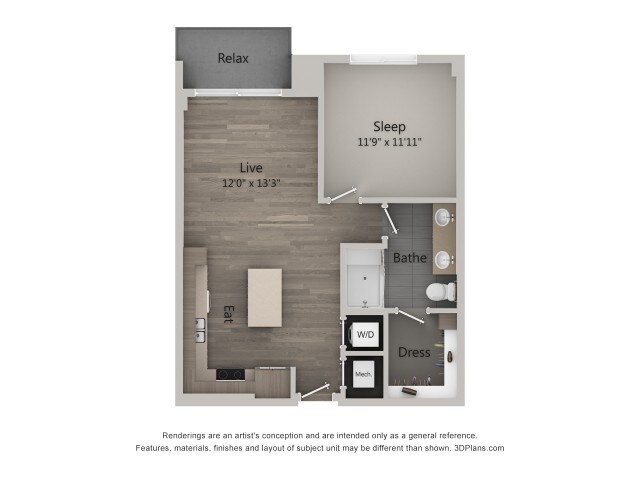 Estudio, 1 Baño, 613 pies²Disponible AhoraGalería del Modelo