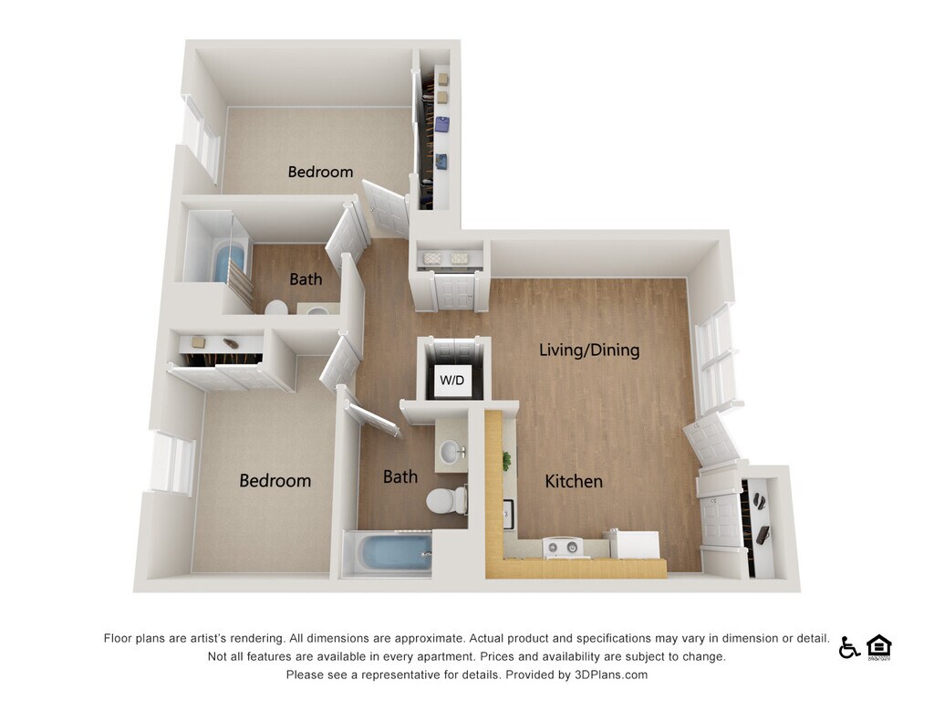 Modelo de apartamento: B2$3,3002 Dormitorios, 2 Baños, 877 sq ftDisponible AhoraLos planos de la planta son una interpretación artística. Todas las dimensiones son aproximadas. Los tamaños o el detalle del producto real y sus especificaciones pueden variar. No todas las características están disponibles en todos los hogares para rentar. Los precios y la disponibilidad están sujetos a cambios. El alquiler que se muestra es mensual. Se pueden aplicar ciertos cargos, por ejemplo, entrega de paquetes, recolección de basura, agua, servicios, etc. Depositos varian. Consulta a un representante para conocer detalles.