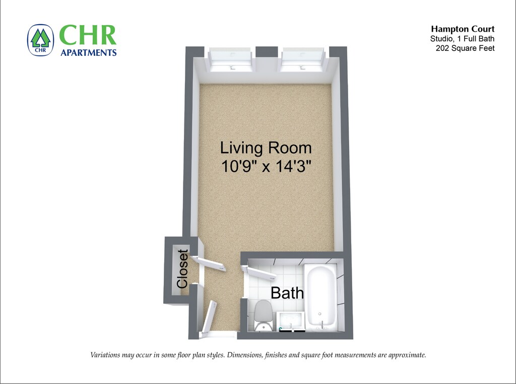 Hampton Court - Studio/1 Bath - Plano 4 Unidad de apartamento: 206Modelo de apartamento: Hampton Court - Studio/1 Bath$1,825Estudio, 1 Baño, 202 sq ftDisponible Ahora![]()