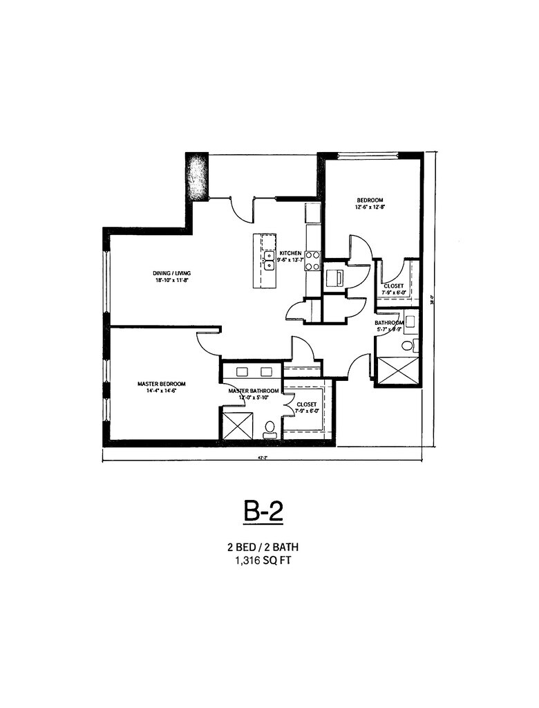 1 Dormitorio, 1 Baño, 718 pies²Disponible AhoraGalería del Modelo