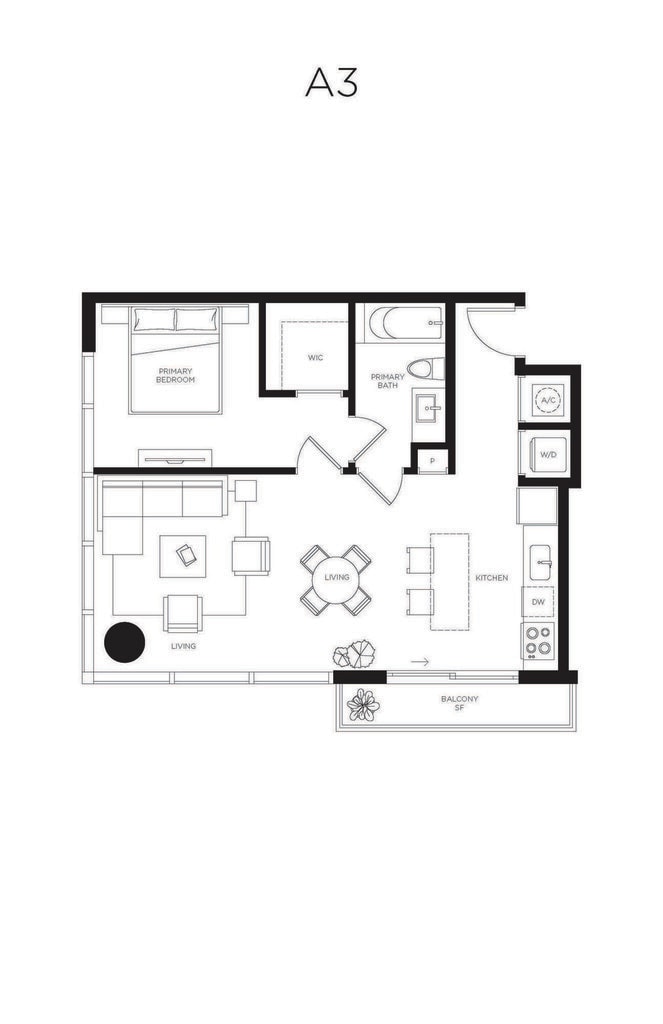 Modelo de apartamento: A1Desde $2,7551 Dormitorio, 1 Baño, 580 sq ftDisponible March 1, 2026![]()
