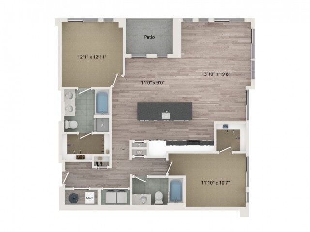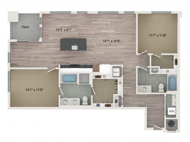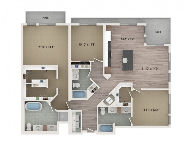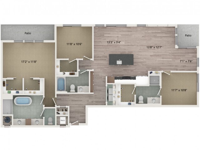 Modelo de apartamento: Studio S3Estudio, 1 Baño, 550 sq ftNo Disponible![]()