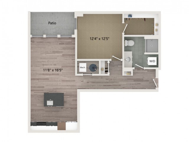 Modelo de apartamento: Studio S1Estudio, 1 Baño, 504 sq ftNo Disponible![]()