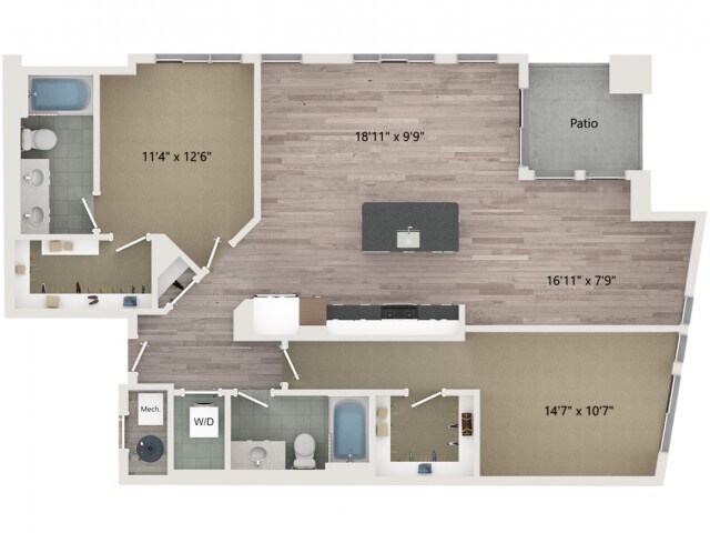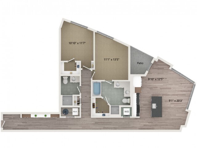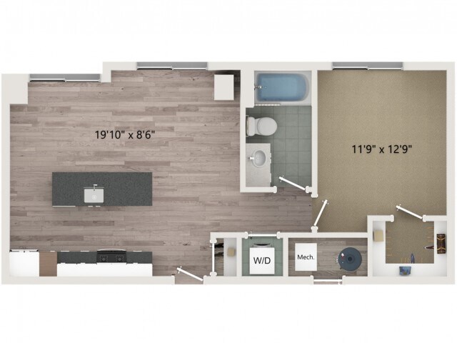 Modelo de apartamento: Urban UB1Estudio, 1 Baño, 587 sq ftNo Disponible![]()