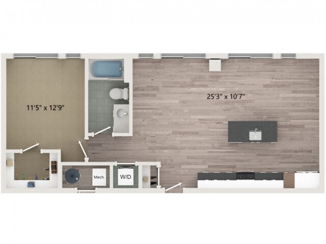 Estudio, 1 Baño, 605 pies²Galería del Modelo
